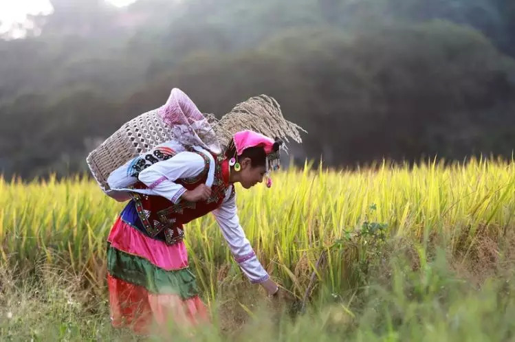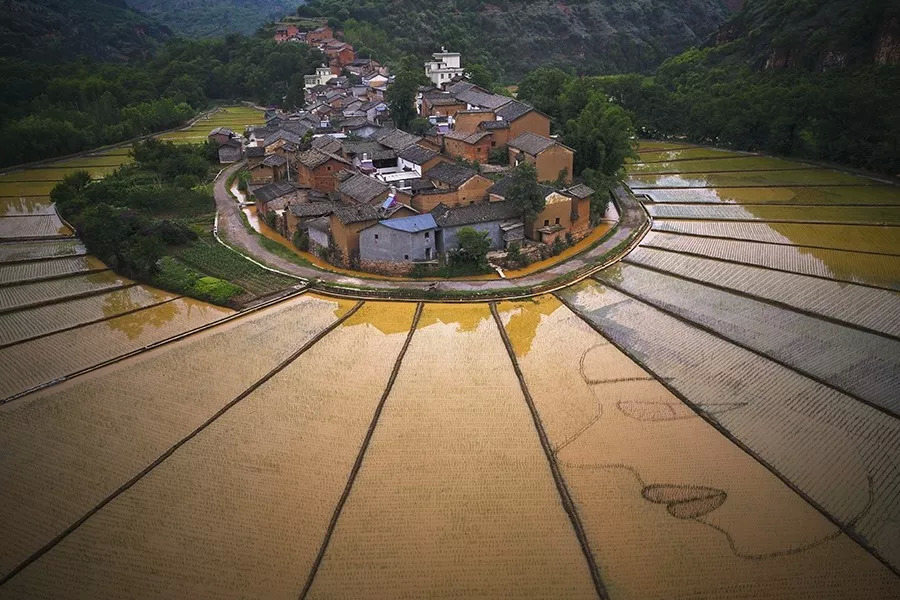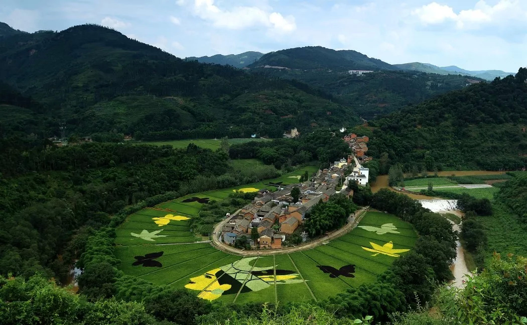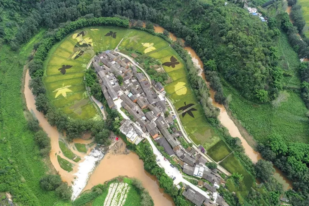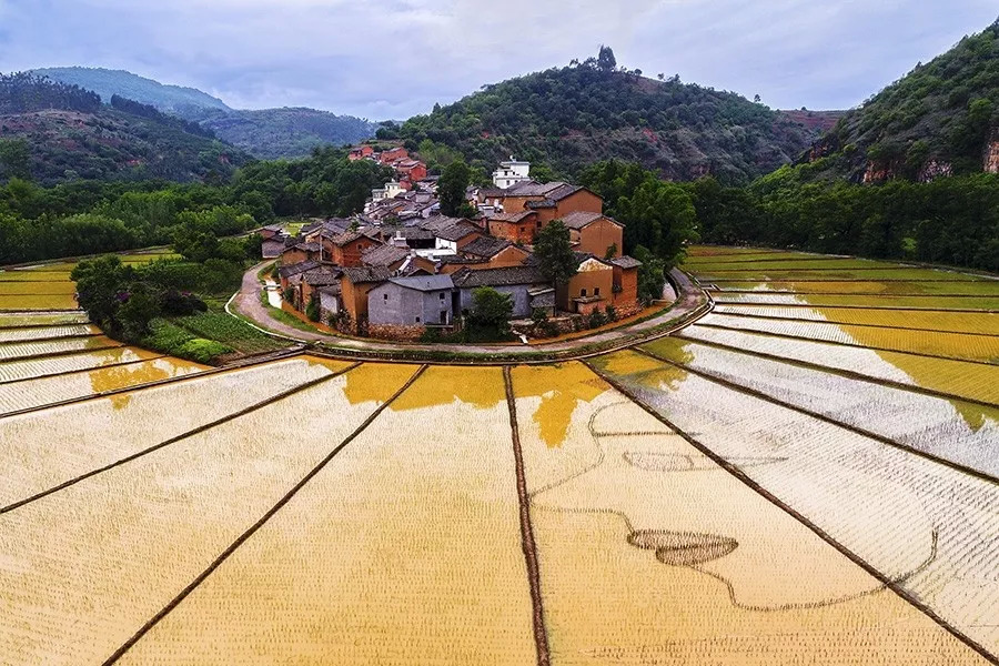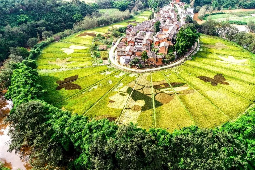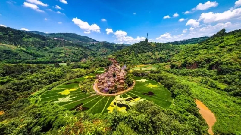 如今,村里又有了一个特色,那就是种上了带有图案的稻田,就像画家的调色板。每当稻谷成熟的季节,彝族姑娘走在田头,让人流连忘返。