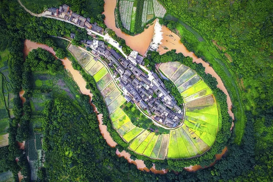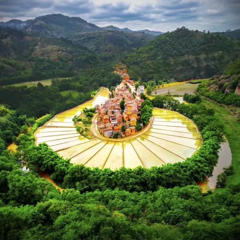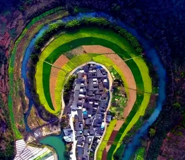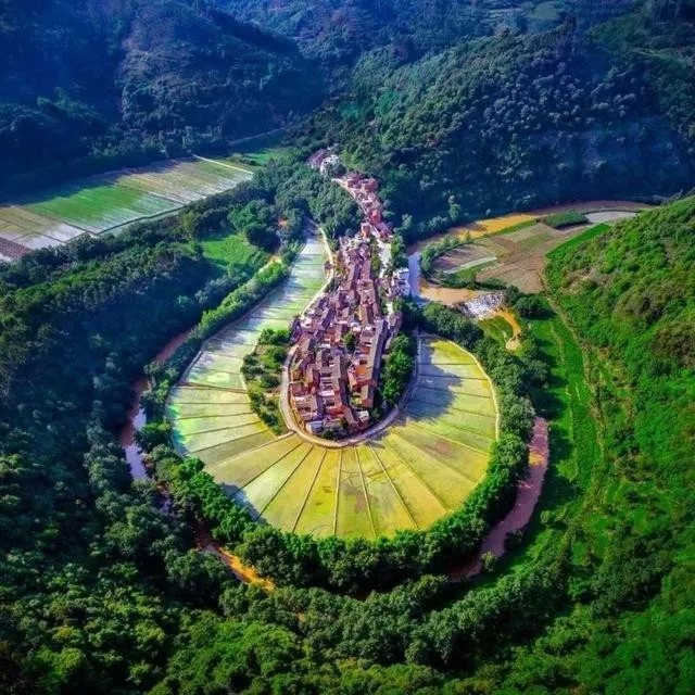 村子有两道护的河流,第一道仅挨村边,第二道在农田边上,河流三面环抱着小村落,村后便是巍峨的青山,实在美得不像样。