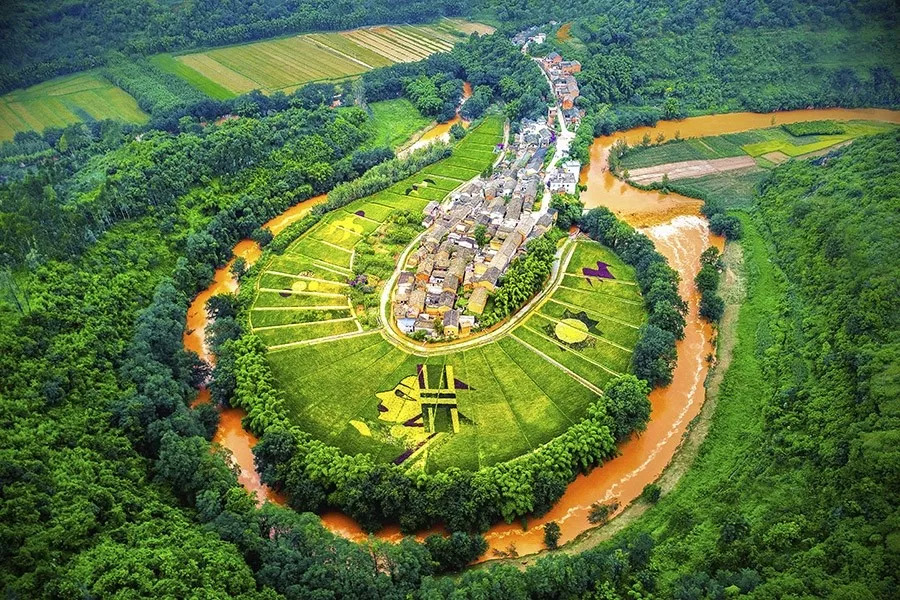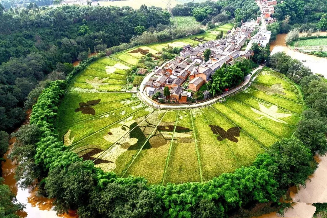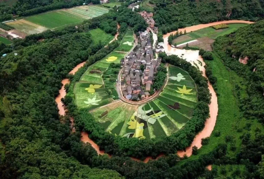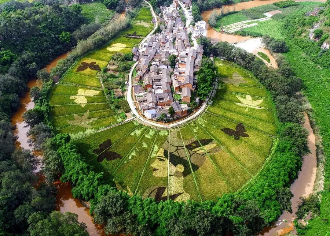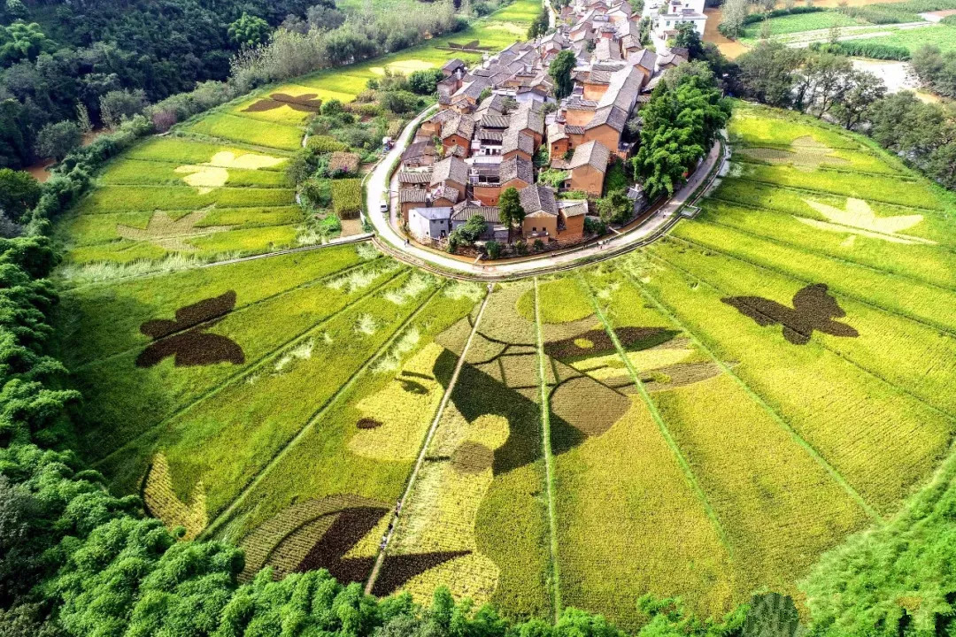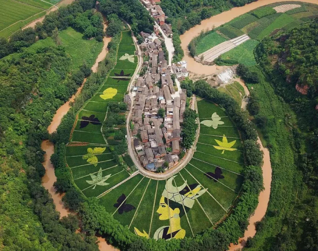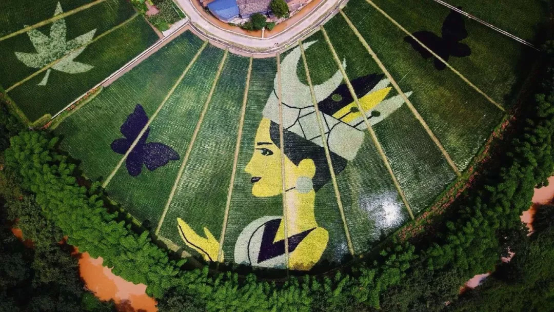 浙江大学彩色水稻创意农业示范基地在这里落户,工程师运用GPS定位,在这片河湾土地上设计出了绝美的民族风情稻田画,大自然的鬼斧神工和现代科技之美在这里交相辉映。