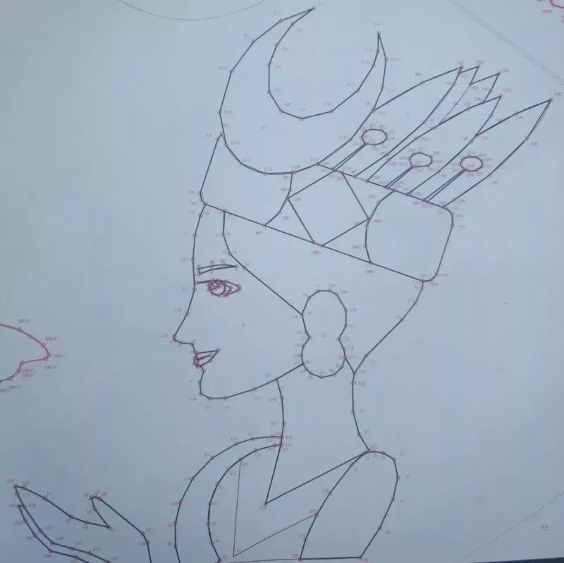 苗族美神 " 仰阿莎 " 之引枫蝶舞图案包括仰阿莎半身像、蝴蝶、枫叶一共 11 个图案,因图案复杂,经工程师测算共有 720 个放样点位,需要分两个工作组用 3 — 4 天才可以放完点位。