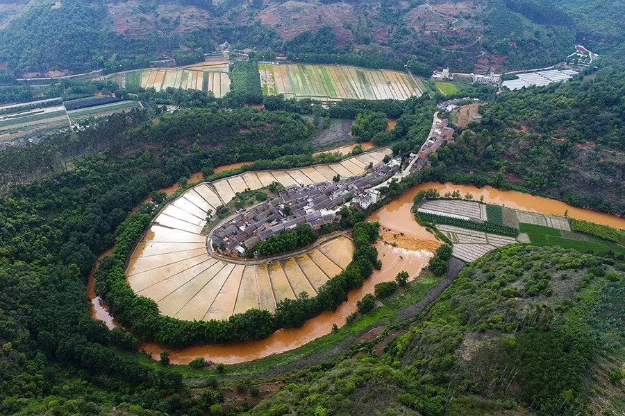 宜良县耿家营乡境内有两条河,主支流为明月河,另一支流为马蹄河,两河交汇后向形成了独特的“马蹄湾”自然景观。