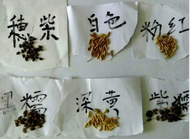 穗紫、紫糯、深黄、黑糯、白、粉红