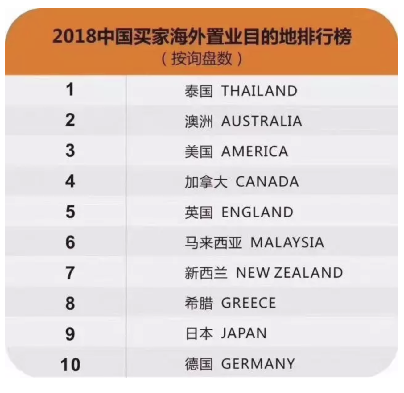 全球海外房产网站居外网独家询盘数据显示,按询盘数看,泰国在2018年中国买家海外置业目的地排行榜上高居榜首。这一排名不仅超过了澳洲和美国,还是连续第三年上升,比2016年排行第六及2017年位列第三的成绩都要好。