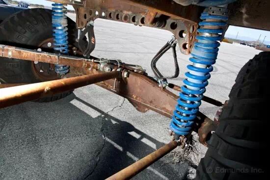 粗壮的钢管以及驾驶室的防滚架保证了车身强度,四连杆独立悬架,Fox Racing螺旋弹簧减震器,动力可达500马力的GM RamJet502 V8发动机,GM三速自动变速器,赋予了它狂暴的越野性能。因此它能够灵活驰骋在亚利桑那州的沙漠中,靠四个轮子去追赶一辆火车。