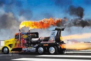 Shockwave,冲击波,由加拿大安大略省一对父子打造出的世界最快的飞机引擎动力卡车,它速度甚至可以超过日本的子弹头列车。
