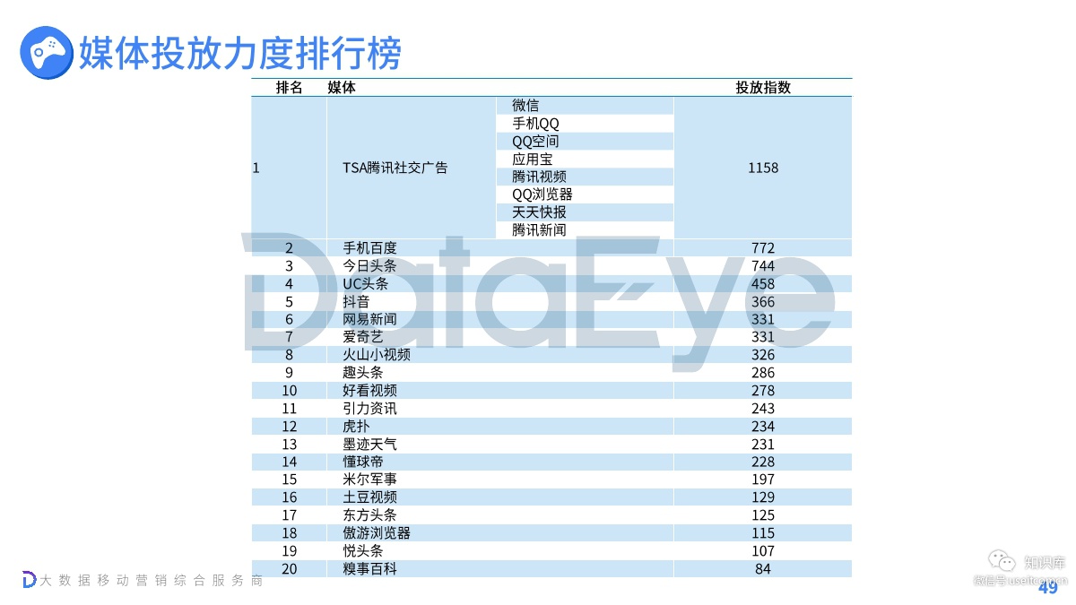根据DataEye发布的《2018移动游戏全年买量白皮书》显示,今日头条和抖音两款产品在移动游戏买量市场均进入了前五名,和“TSA腾讯社交广告”几乎不分上下。