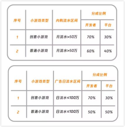 相比之下,字节小游戏的广告抽成比例比微信小游戏略微低了10%,但开发者必须是首发游戏。