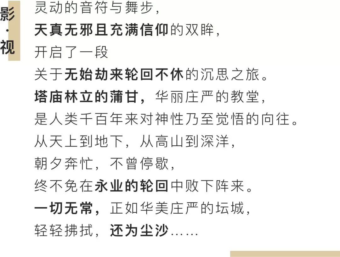 同样,每一帧都是摄影大片般的精美宏伟,但是风光和万象背后影片自有深意,镜头韵律不疾不徐,却直指人心,抵达灵魂深处。