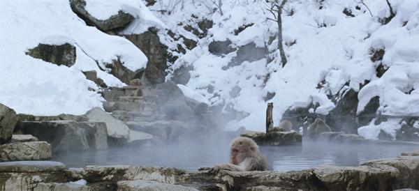 从巍峨的喜马拉雅山脉开篇,皑皑雪山脚下,镜头转向日本长野泡天然温泉的雪猴。