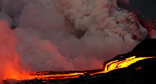 美国夏威夷基拉韦厄峰火山(Kīlauea)从1983年开始喷发,至今仍未停息,浓烟滚滚,岩浆四溅。