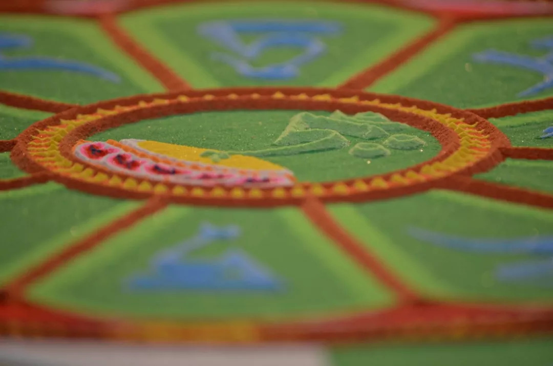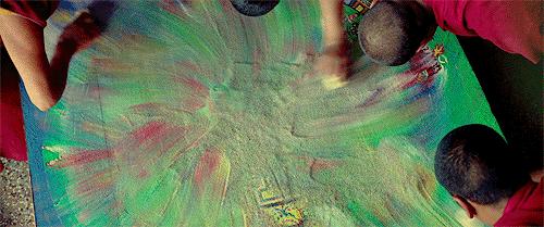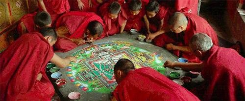 这种藏传佛教最独特也最神秘的宗教艺术,描绘了精美绝伦的沙坛城,据说坛城能为世界净化,修行者只要观想坛城就可以得到内在的平静。