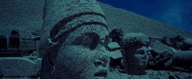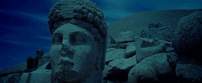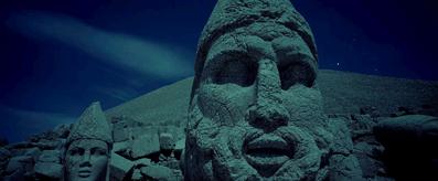 土耳其内姆鲁特山(Nemrut),诸神列王化为石像,两千年来经过频繁的地震,多数已破碎散落。