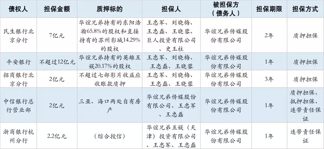 去年底,中诚信国际就将华谊兄弟相关债项信用等级列入观察名单,因为发行金额22亿元的“16华谊兄弟MTN001”和发行金额7亿元的“18华谊兄弟CP001”分别将于2019年1月28日和2019年4月9日到期面临兑付,能否顺利兑付存疑。为了兑付即将到期的债券,华谊兄弟踩着deadline向多家银行及信托申请授信累计达25亿元,将上市公司的房产、对子公司的持股、影片收益等等都掏了出来。