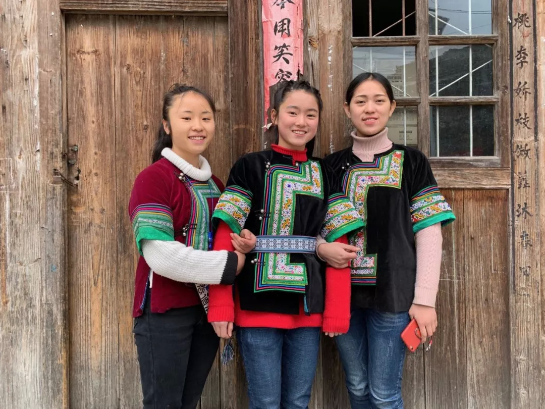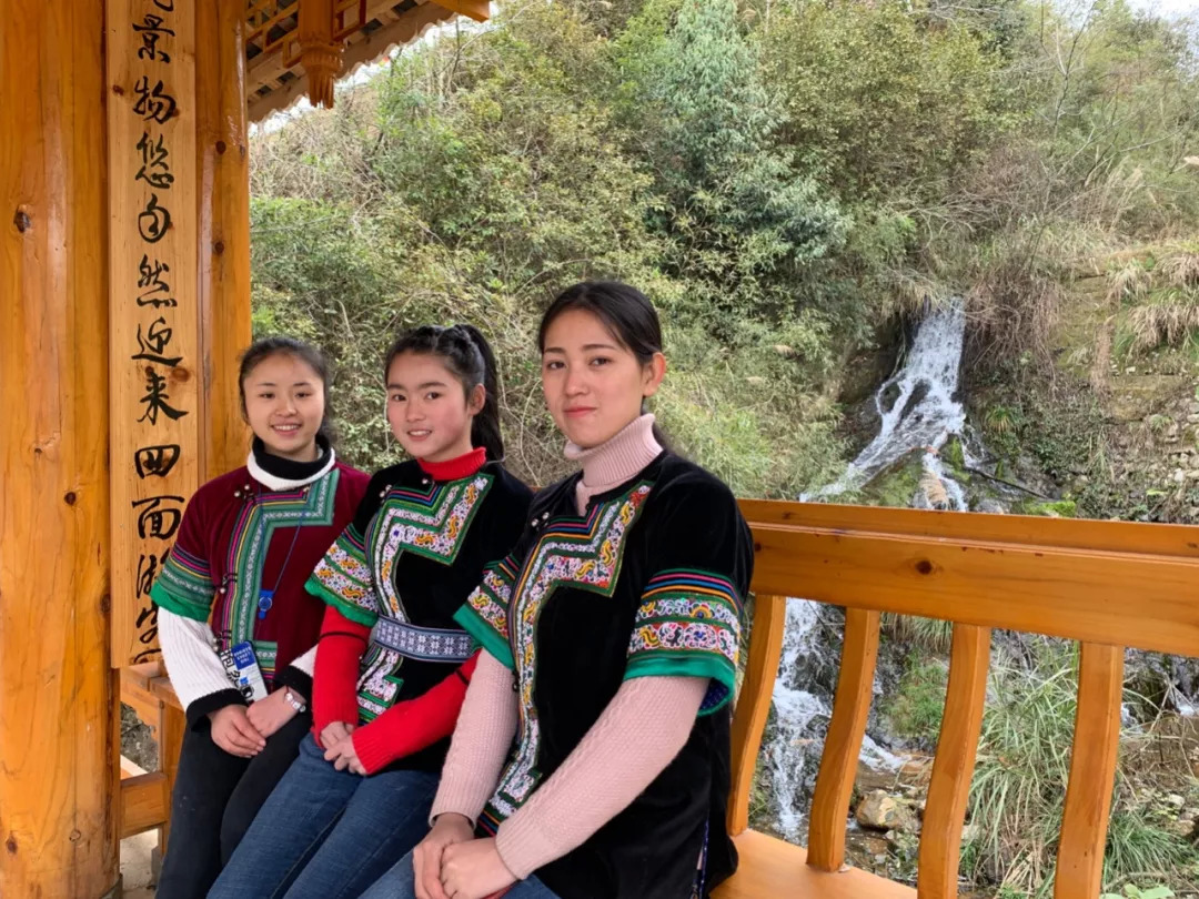 二妹吴文丽和三妹石廷菲是村里的高中生,学习艺术,表演功底不错。去年6月,吴玉圣团队去拍摄一场婚礼,在那里遇到了四妹杨妮丹;新娘是杨妮丹的表姐,嫁来盖宝,杨妮丹那天穿着侗族服饰在伴娘团的队伍里,被吴亮首先发现,后来吴玉圣团队和杨妮丹聊了近一个小时,最终同意加入。