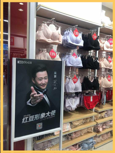 你妈不会在乎他是不是五五分,有没有大长腿,只要把吴京西装革履的人形立牌摆在内衣架子旁,他就是最能激发购买欲的带货老王子。▼