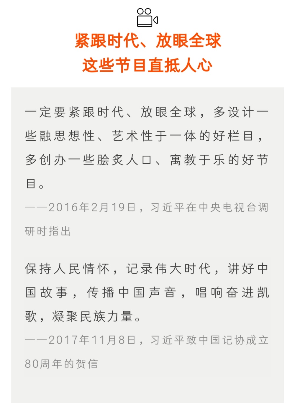 用心用情抒写伟大时代,用功用力满足民众需求,这些节目不仅精彩好看,还生动传播了中华文化,讲好中国故事。