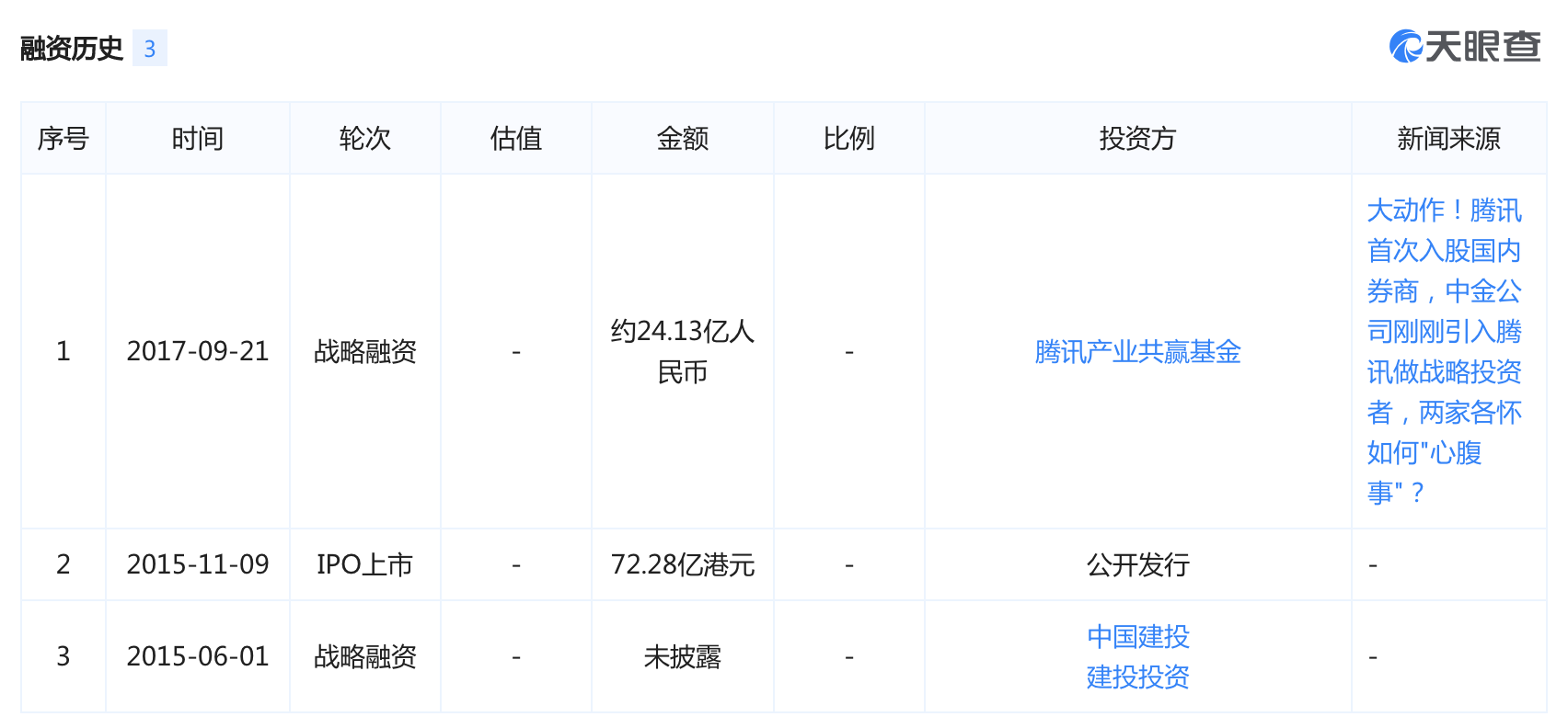 值得注意的是,2017年9月,中金公司引入腾讯作为投资方。当时是被互联网公司开始争夺券商牌照的象征。阿里入股后,中金已成为为数不多的同时拥有腾讯、阿里两家互联网巨头背景的公司。