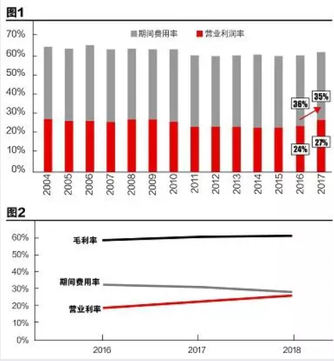 2017年,可口可乐毛利率提升,期间费用率下降,营业利润率提升,从盈利能力角度看,处于比较明显的改善状态。这与上述商业模式变化的变化是一致的,因此从趋势上看,2018年随着商业模式调整持续深化,可口可乐的盈利能力指标还将进一步改善。(参见图1)