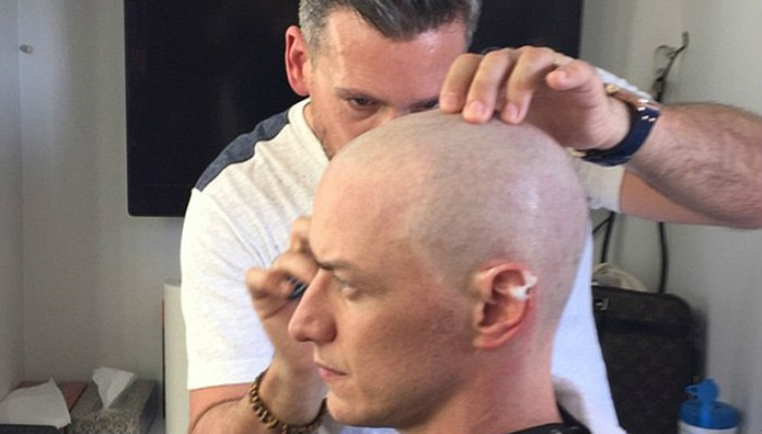 进入角色:近日,本片的导演分享了一张演员詹姆斯·麦卡沃伊出演秃顶的教授Charles Xavier的照片