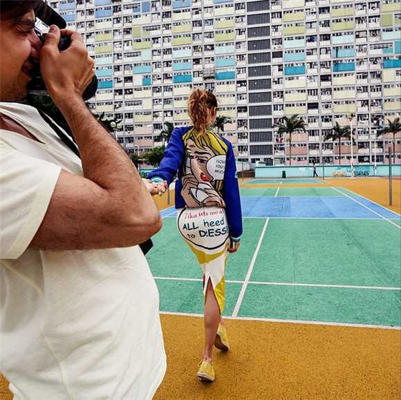 在香港彩虹般的公屋楼下拍的这张看似随意,