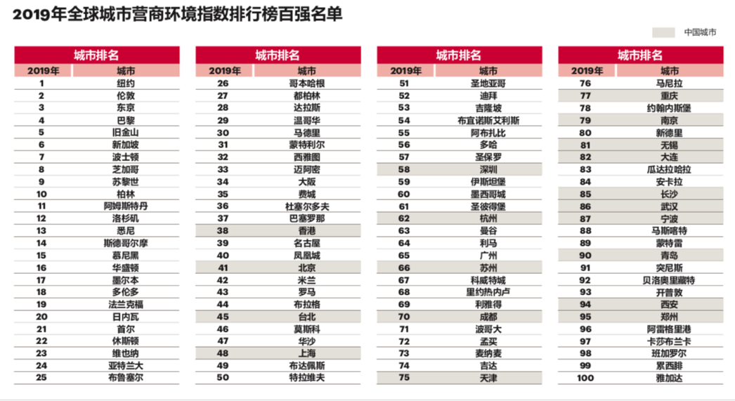 近日,科尔尼发布了《全球城市营商环境指数》 (Global Cities Business Environment Index),对来自45个国家的100个城市的营商环境进行了综合排名。中国有20座城市上榜。