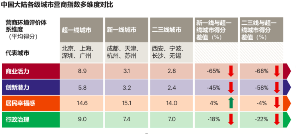 虽然中国主要城市的营商表现,在全球来看依然薄弱,但好消息是,不少一线城市,甚至二三线城市,在部分指标上正在缩短和超一线城市之间的差距。