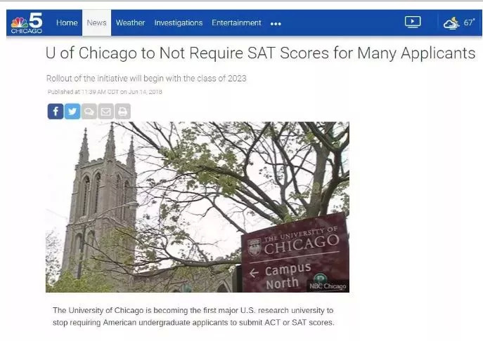 芝加哥大学首先在官网上表示,对下一届申请的学生取消SAT、ACT这一要求。