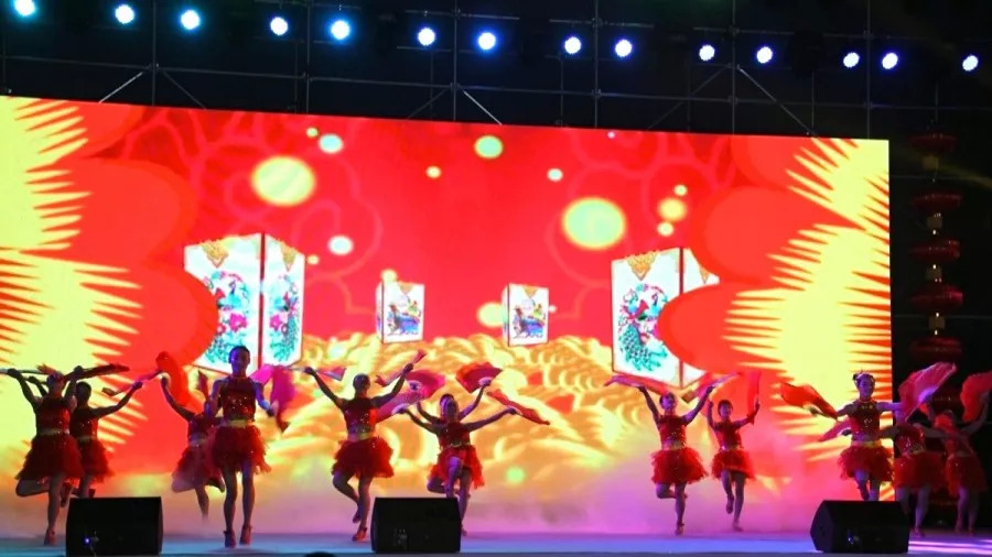 晚上19:00,元宵节文艺晚会在佳利艺术团一曲喜庆的《开门红》中拉开序幕,现场人山人海,欢声雷动。