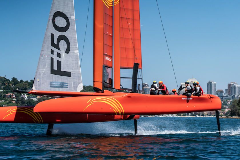 F50船宽8.8米,长15米,翼帆高24米。比赛时船上总共5名船员,包括一名舵手、一名帆翼调控手、一名航行控制与战术师以及两名绞盘手。船上还安装有三个摄像机镜头和三个麦克风。F50水翼双体船在高速运行时,船翼能够托起船体实现离水飞行。
