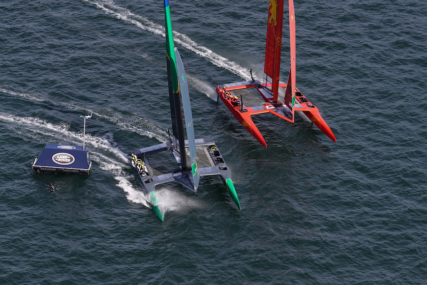SailGP是一场近岸赛,参赛船只在规定的区域内行驶、绕标和冲线,不远处就是前来观战的游船和观众。悉尼站两天的比赛由五轮群发赛和最后一轮前两名对抗赛组成。相比要行驶到外海甚至环球航行的离岸赛(2017-18赛季沃尔沃环球帆船赛全程环球45000海里,跨越四大洋,途径六大洲及十二座地标城市),近岸赛中船只之间的超越、贴近甚至冲撞都能被观众尽收眼底。由于F50的高速,船在行进和转向很容易产生激烈的对抗。在第二个比赛日的第五轮比赛中,中国队和澳大利亚队、日本队和美国队就险些发生剐蹭。