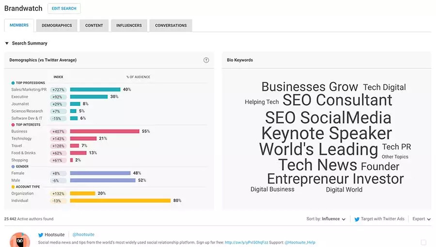 Brandwatch:这家英国的创业公司着重于在社交平台关注竞争对手的受众,主要监控竞争对手的社交媒体输出。企业可以分析并查看对手的受众特征、以及他们共享的内容。甚至可以下载粉丝作为列表,通过像 Twitter 广告之类来定位类似的受众。这家公司融资6470万美元,利润8960万美元。