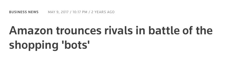 路透社在 2017 年就曾报道过,沃尔玛依靠计算机程序扫描竞争对手网站上的价格,以便相应地调整其价格列表。因为价格差50美分就可能意味着你的消费者就去别家买了。(嗯,没错,精明,是哪个国家消费者都有的事!)