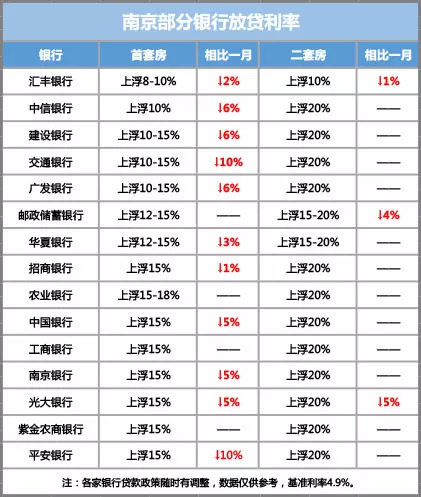 4、目前南京首套房贷利率多家银行回到10%-15%。