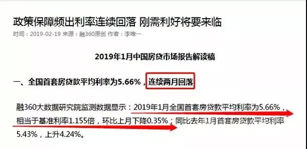 根据融360发布的报告显示,2019年1月全国首套房贷款平均利率为5.66%,环比上月下降0.35%,为连续两个月回落。首套房贷款利率持续下降,对刚需购房族来说无疑是个利好的。在1月央行“定向降息”刺激下,货币政策稍微宽松,银行流动性得到一定程度的缓解。