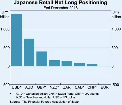 日本零售投资者贡献了日本外汇交易量的10%左右,他们对这次的日元突发上涨有重要影响。一些公开的零售持仓数据显示,在这次事件发生前,日本投资者持有大量的高收益货币,包括美元、澳元、南非兰特和土耳其里拉。