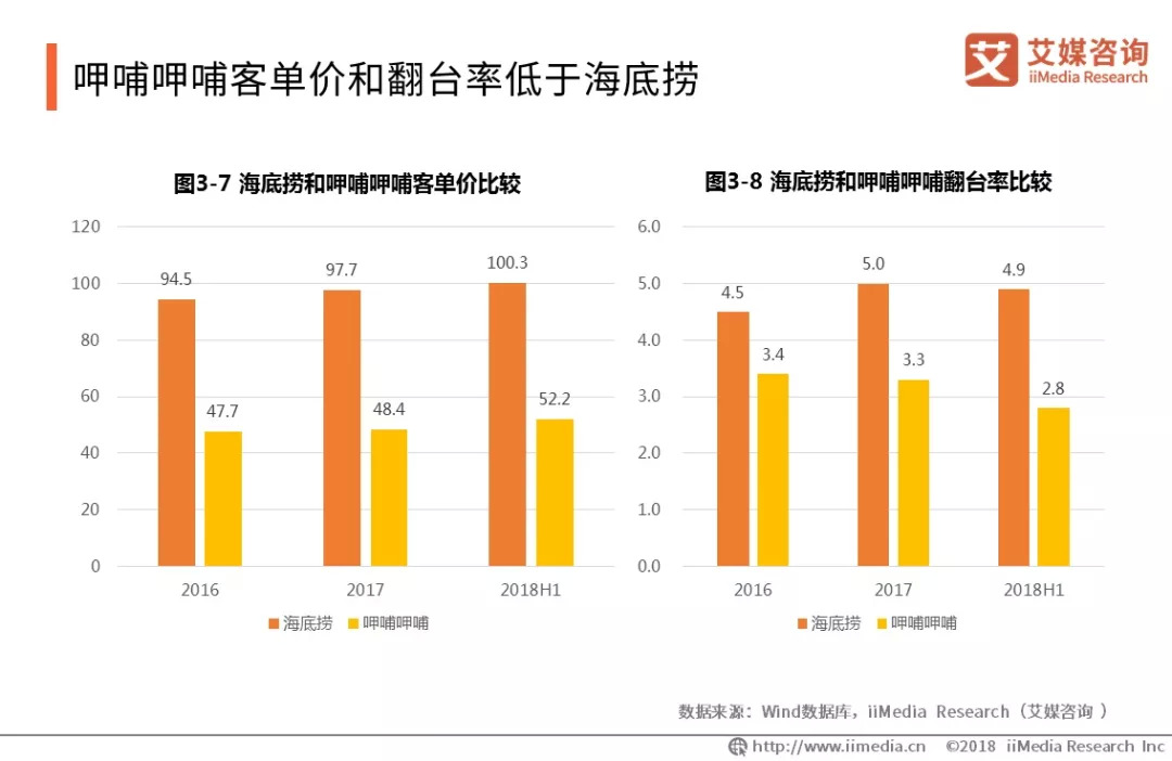 通过对比分析,呷哺呷哺与海底捞在成本控制、客单价、翻台率上的表现明显不同。