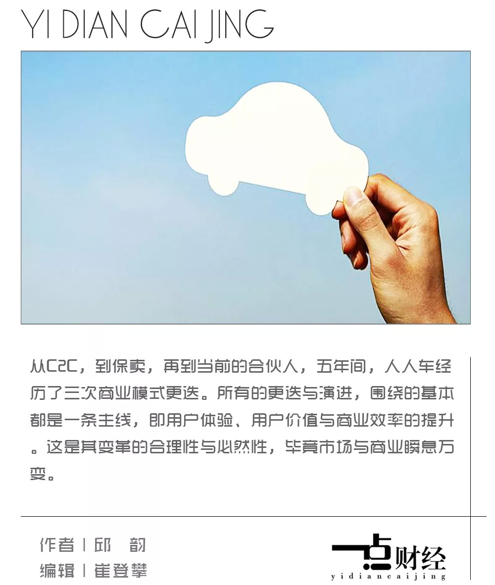从C2C,到保卖,再到当前的合伙人,五年间,人人车经历了三次商业模式更迭。所有的更迭与演进,围绕的基本都是一条主线,即用户体验、用户价值与商业效率的提升。这是其变革的合理性与必然性,毕竟市场与商业瞬息万变。