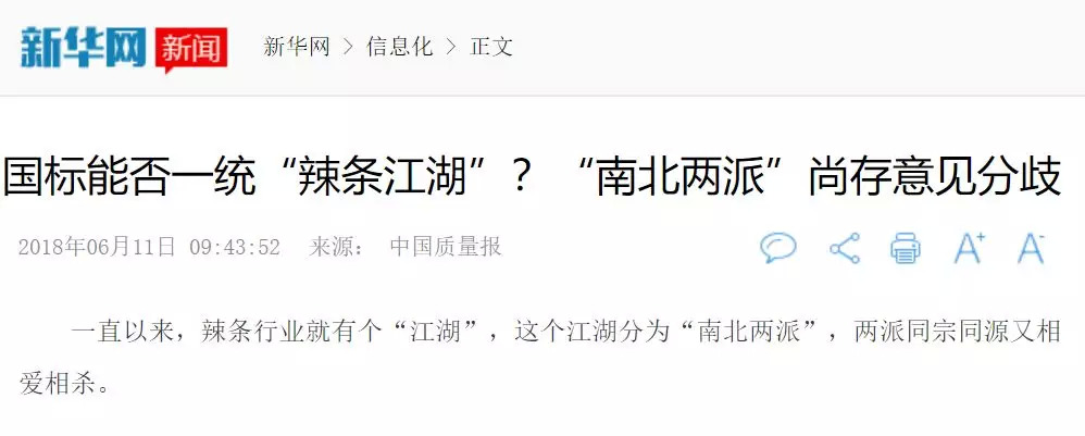 不过,新的问题接踵而至。在辣条食品只有地方生产标准,没有国家生产标准的情况下,“合格产品”的“标准”无所依从。企业为维护自家产品的“正统”,相应冲突时有爆发,甚至牵涉进了“官司”。