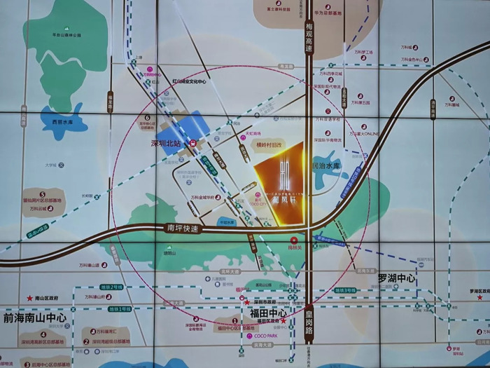 靠近深圳北站商务区和坂雪岗科技城,万科和风轩的地理位置优越,不过距离地铁4号线白石龙站和5号线民治站分别约1.1公里,步行需要15分钟左右。由于项目位于梅林关口附近,以后早晚高峰出行塞车的可能性极大,部分户型也难以避免受到噪音影响。