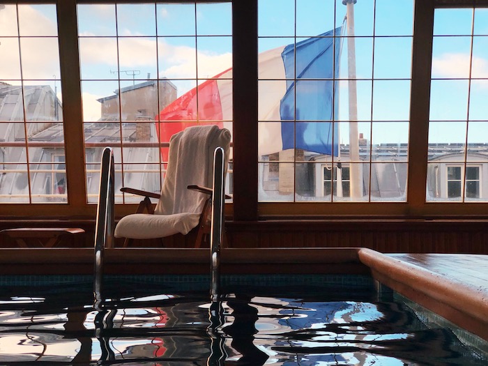 对了,别忘了去7层的船型泳池看看。这个造型别致的泳池,是由当年替希腊船王欧纳西斯造船的设计师打造的,周围的壁画会让人恍然觉得身处在地中海的游轮上。当然了,唯一不同的是,走出露台看到的不是海,而是巴黎铁灰色的屋顶。