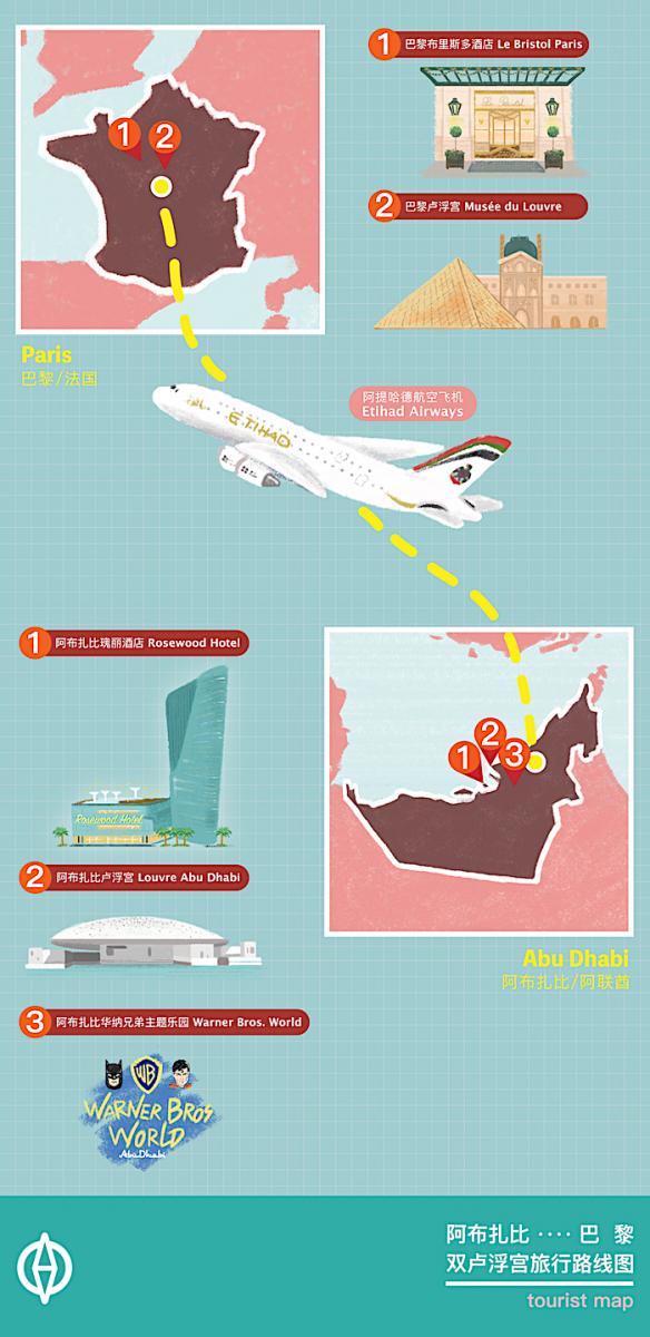 此外,阿布扎比往返巴黎的航班时刻可以与中国航线时刻进行良好的衔接,在阿布扎比机场转机顺畅又便捷。