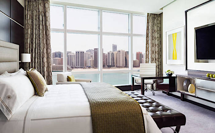 154间客房和35间套房都能享受得到阿拉伯湾(Arabian Gulf)、阿布扎比市天际线的美景;随处可见的独特元素,如四米长的美国桃本餐桌、捷克特制水晶吊灯和意大利云石,都让这里朴素中透露出一丝丝奢华。