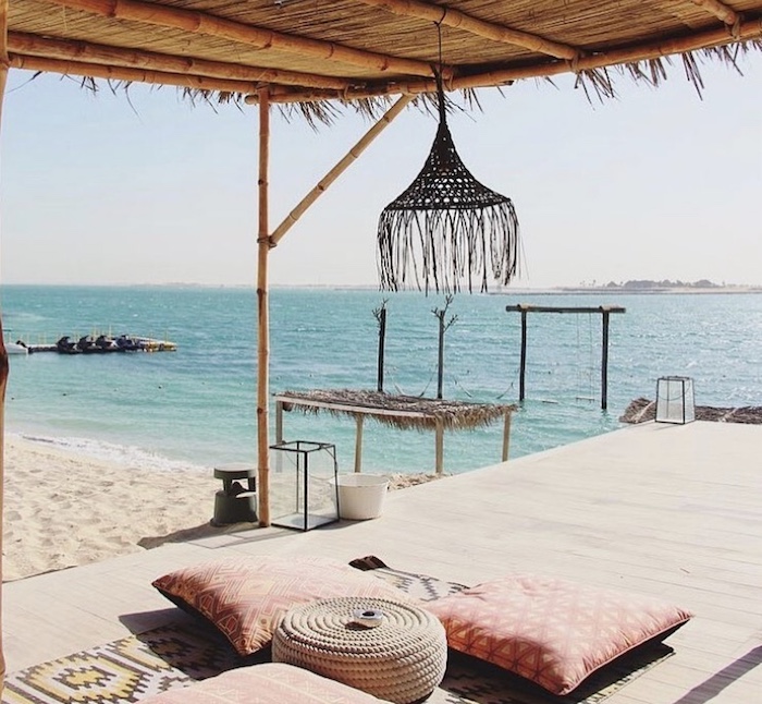 Zaya位于阿拉伯湾,地处阿布扎比市海岸线以东。阿联酋企业家Nadia当时聘用巴黎建筑师进行规划,在岛上种下了800多棵枣椰树,每到夏季,人们来这里度假休闲,晒着太阳、冲浪浮潜、在水中荡秋千、享受日落和日出,还可以乘独木舟漂在海边……