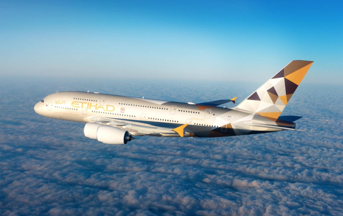 在阿提哈德航空波音787上,飞往阿布扎比