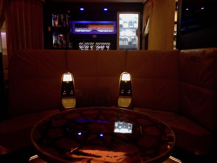 想必这绝对是各位“九哥们“(酒哥)的最爱。在头等舱和商务舱之间有一个豪华休息室,休息室内设有酒廊,挑选几杯中意的酒,坐在沙发上,中间的桌子会升起来,给人一种置身于酒吧的时尚感,配合着周围的灯光氛围,在高空微醺的感觉一定很独特。