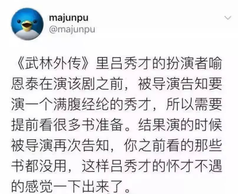 在戏里,怀才不遇的那股“穷酸劲儿”只是吕秀才的一身气质的引子。