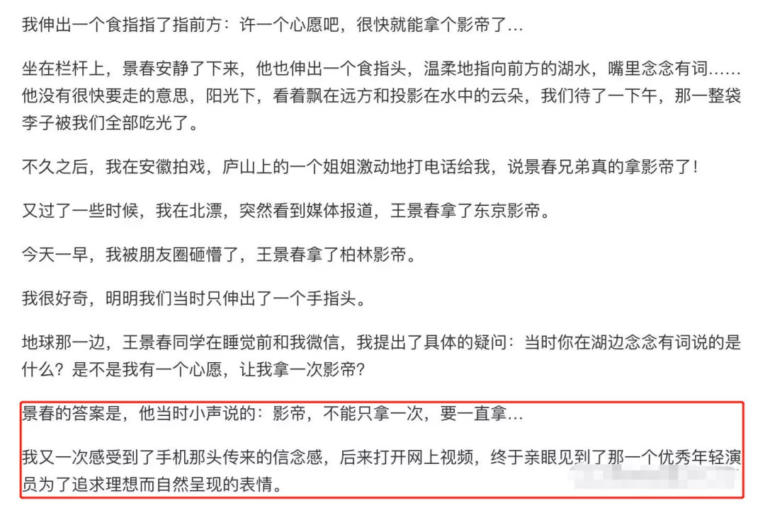 几天前,“华人之光”王景春拿了柏林影帝,喻恩泰发文祝福。