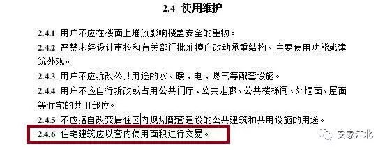 规范要求:住宅建筑应以套内使用面积进行交易