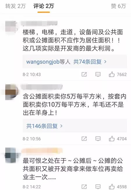 2018年7月,“瞭望智库”微信公号发表文章谈到:提到公摊面积,几乎每个购房者都有一肚子的抱怨——花了100平米的钱,却只买到一个70平米左右的房!