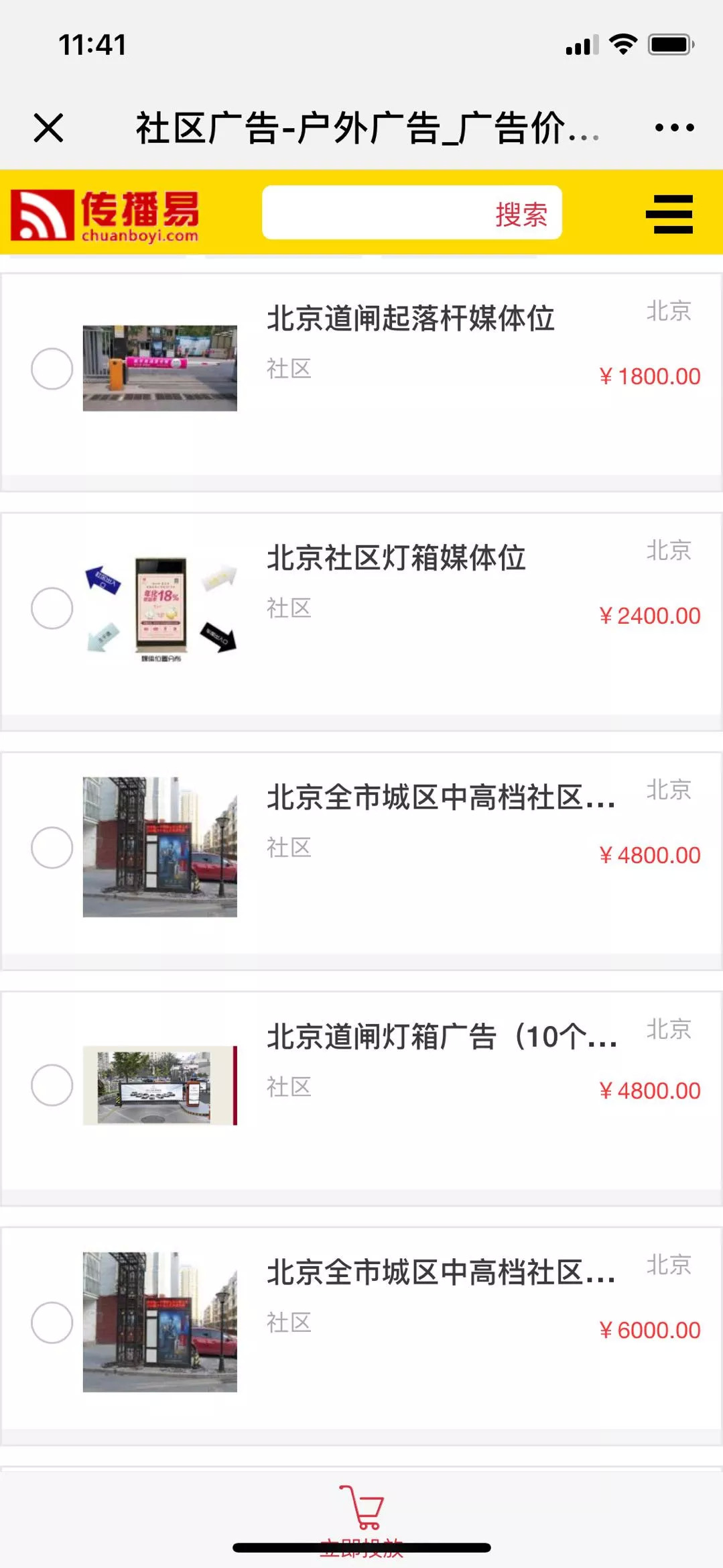记者注意到,不同城市的不同广告位置价格差异很大,而一线城市则多在千元起算。例如,北京中高档社区出入口动感灯箱报价为6000元;北京道闸起落杆媒体位则报价1800元,要求30框起投,最短发布周期一月。